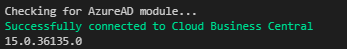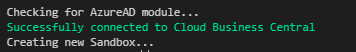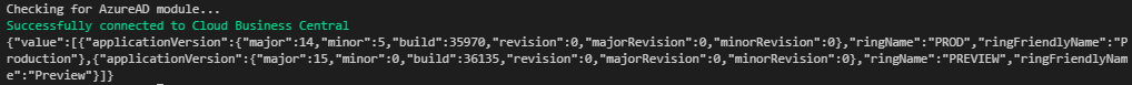 If you notice, the output gives us 2 available versions of Business Central that are available for the sandbox creation: 14.5.35970 (current) and 15.0.36135.0 (next).