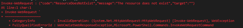 {"code":"ResourceDoesNotExist","message":"The resource does not exist","target":""}