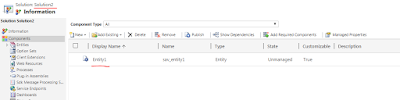 - I have created one solution named Solution1 in Dev instance and create a two new entities Entity1 and Entity2 in that solution and publish all customization.