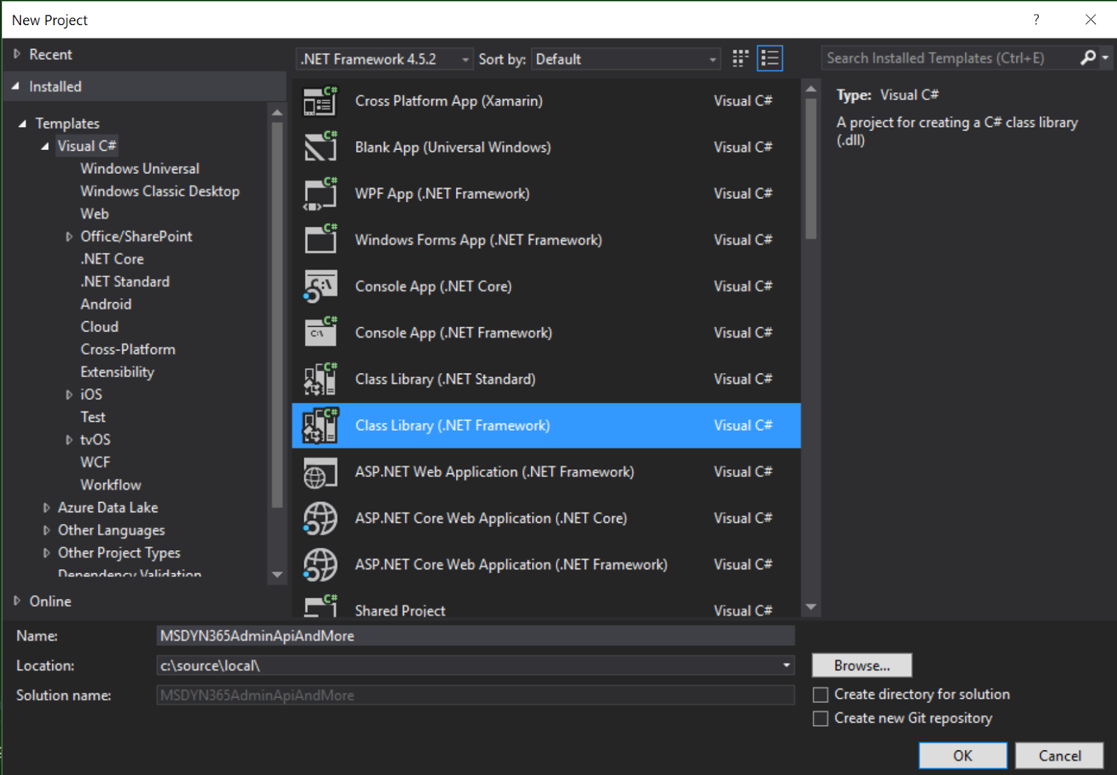The first thing we'll do is to create a new class project for .Net Framework in Visual Studio (download link). Next, add the following NuGet packages: