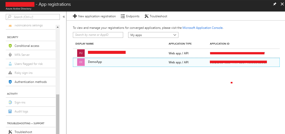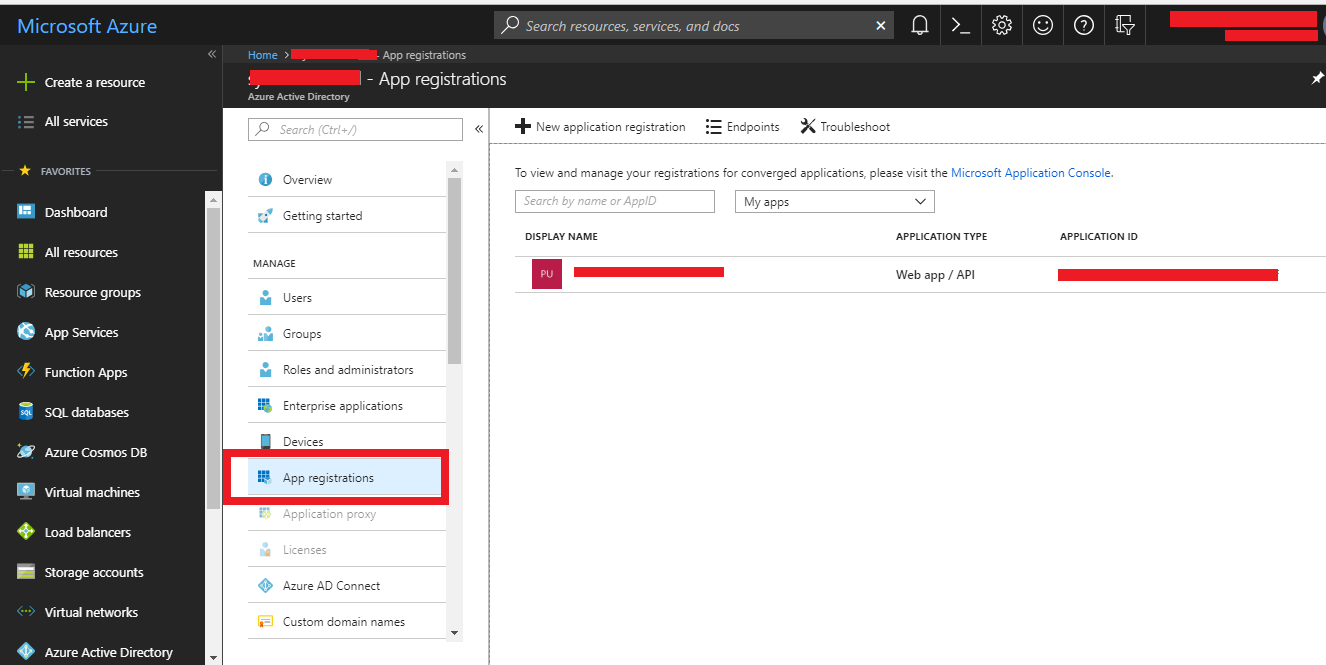 4. Now click on New application registration.