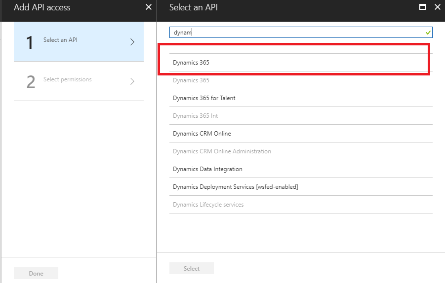 12. Now add permissions for Dynamics 365 for that again click on add button and search it if you don't find in list.