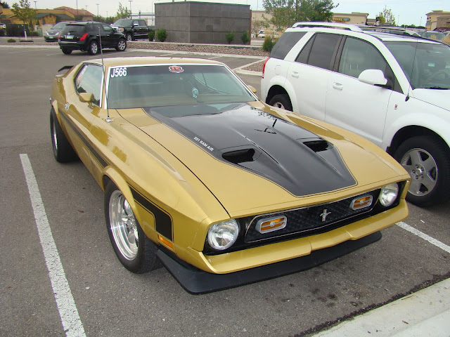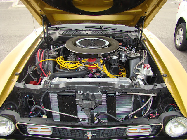 Our day was just about to get much more interesting. A couple weeks aback, prior to arriving to the conference, my boss, Jay Manley, invited me to attend a car show even that was being held in Dilworth, Minnesota, just a few miles outside of Fargo, which I gladly accepted, given the fact that I am also a car nuts - BMW cars, but nonetheless a car nuts. The day before, I spent quite a bit of time trying to convince David to join in, until he finally gave in and decided to go. Jay happens to drive a 1972 Mustang Mach 1 which was originally equipped with a 351 cu CJ (Cobra Jet) engine. Jay has made some changes to this car to say the least and has acquired a Ford 351 cu in Cleveland engine stroked to 408 cu in, .631/.644 CAM lift, 240/244 duration and compression ratio of 13.5:1. This engine is fuel injected, burning 99.9% ethanol. These specs put the Mach 1 at nearly 600 hp at the crank.