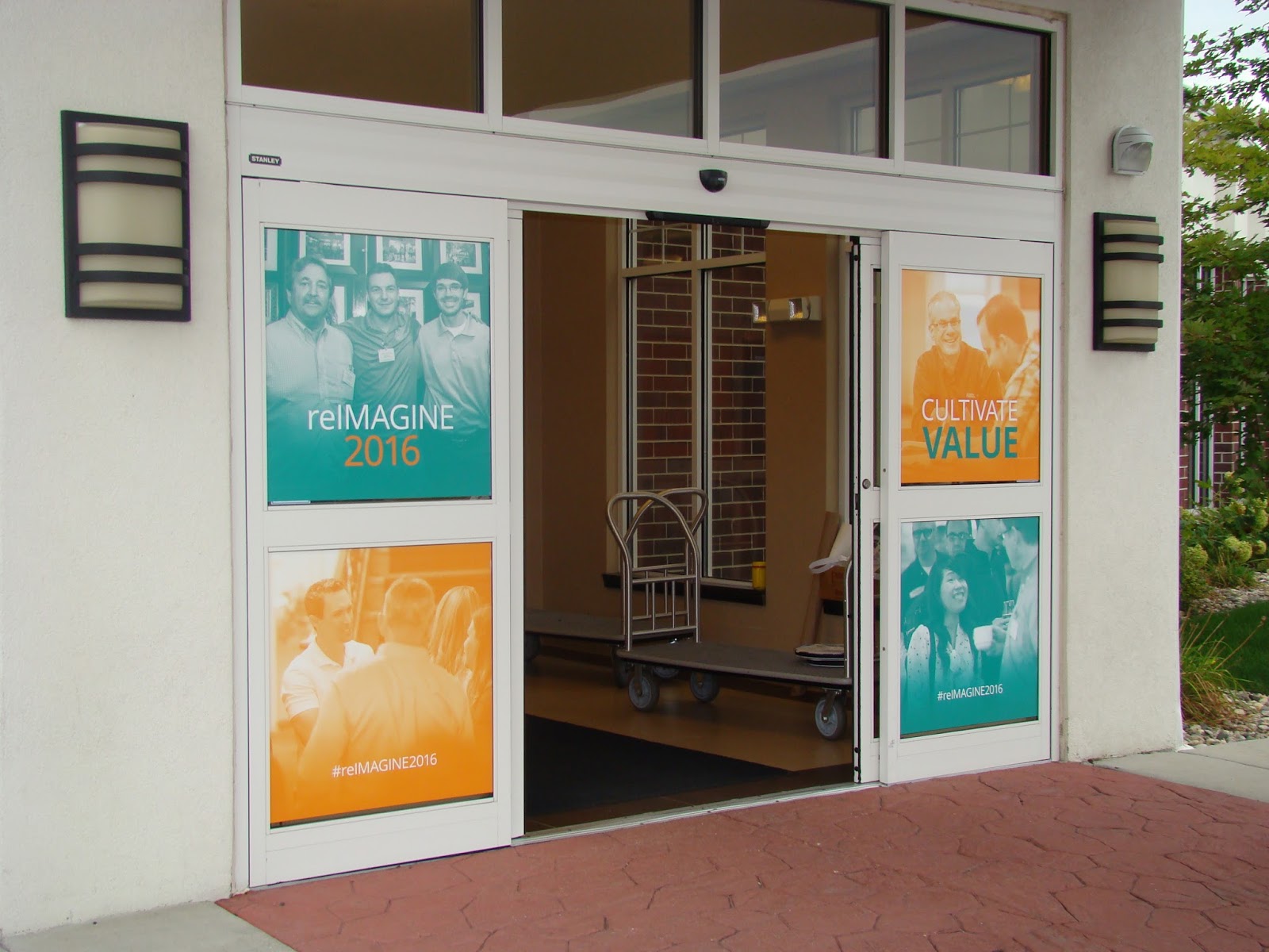 Upon arriving at the Hilton Garden, we caught a small crew putting up some posters signaling the beginning of the event. Posters were placed on the sliding doors and on the outside columns.