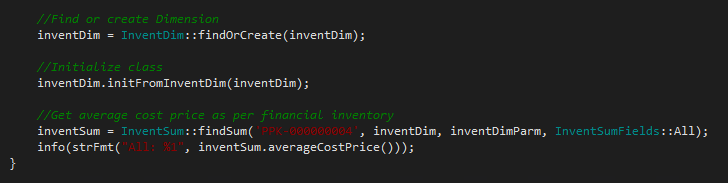 In this blog we will discuss how you can get the item cost price of its storage dimension group setup as per financial inventory checks. Below method will get average cost price as per storage dimension of the item.