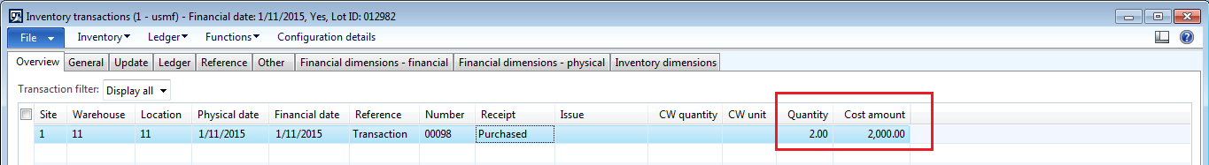 12. You can also see the cost amount updated is the same amount which we have entered manually against the item in the journal line.