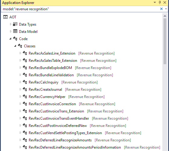 If you look at one of the latest new models introduced, Revenue Recognition you will see that it clearly prefixes application elements with RevRec.