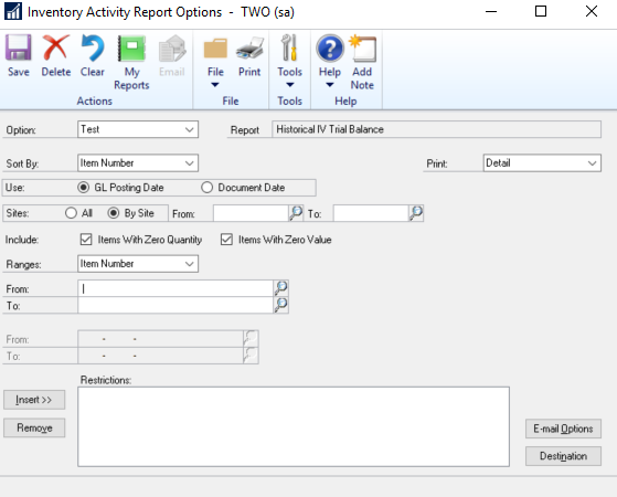Reports > Inventory > Activity > Historical IV Trial Balance,