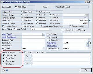 Make sure that all checkboxes are checked in the Maintain History section. This specifies that Great Plains will move these transactions from Open to History and keep them rather than delete them.