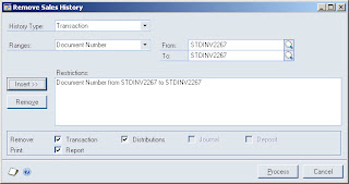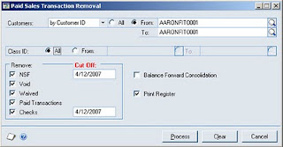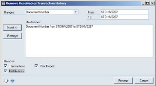 And finally, there are a few caveats about this process. First, it involves several steps that must all be performed properly to avoid deleting data accidentally. Second, it requires that you perform the process on each document you wish to remove--it shouldn't simply be run for a customer or range of customers. Third, it involves removing data completely from GP, as in permanently deleted.