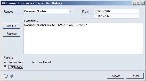 Now that the voided document has been moved to history, the Receivables portion of the transaction can be removed from the database.