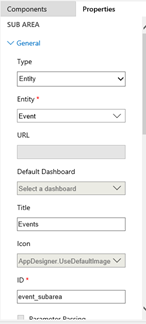 The Site Map Designer provides access to all currently published entities. These entities can be added as Sub-Areas to the Site Map. In the below, I’ve added some previously created entities Event and Registration, which have been published from another solution.