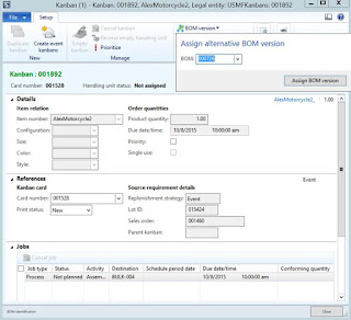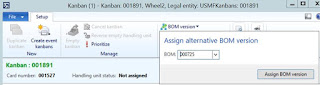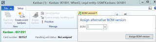 At this point we are missing BOM structure for kanban, so we are going to assign BOM version manually to kanban using Assign alternative BOM version function