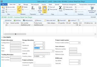 Please note Location is specified on Sales order line per Storage dimension group requirement