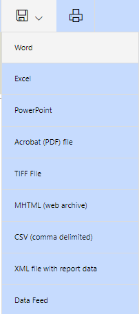 Microsoft Dynamics 365 now offers an option to export reports to PowerPoint in addition to the formats such as Excel, PDF and other file formats which have been supported for several versions. Here is how the Export menu looks on a report: