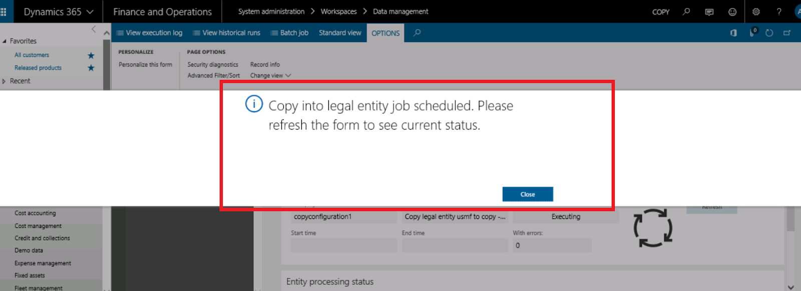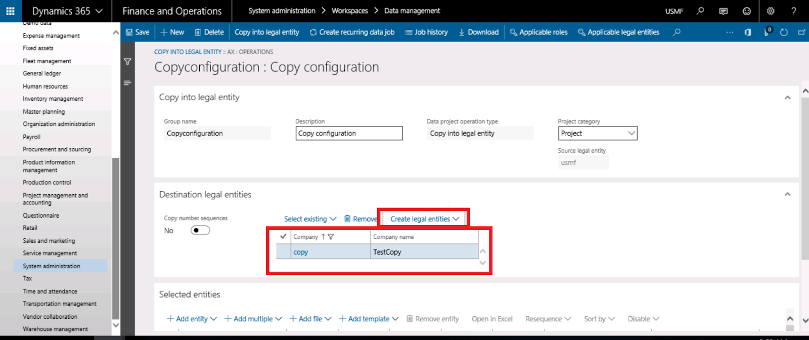 go to data projects you can see copy into legal entity option available