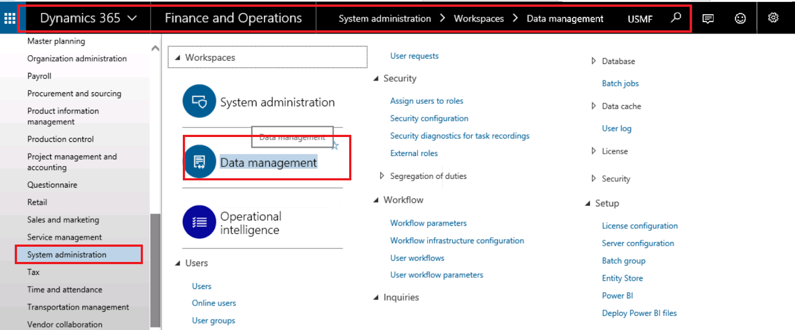 1-go to system administration/workspaces/data management