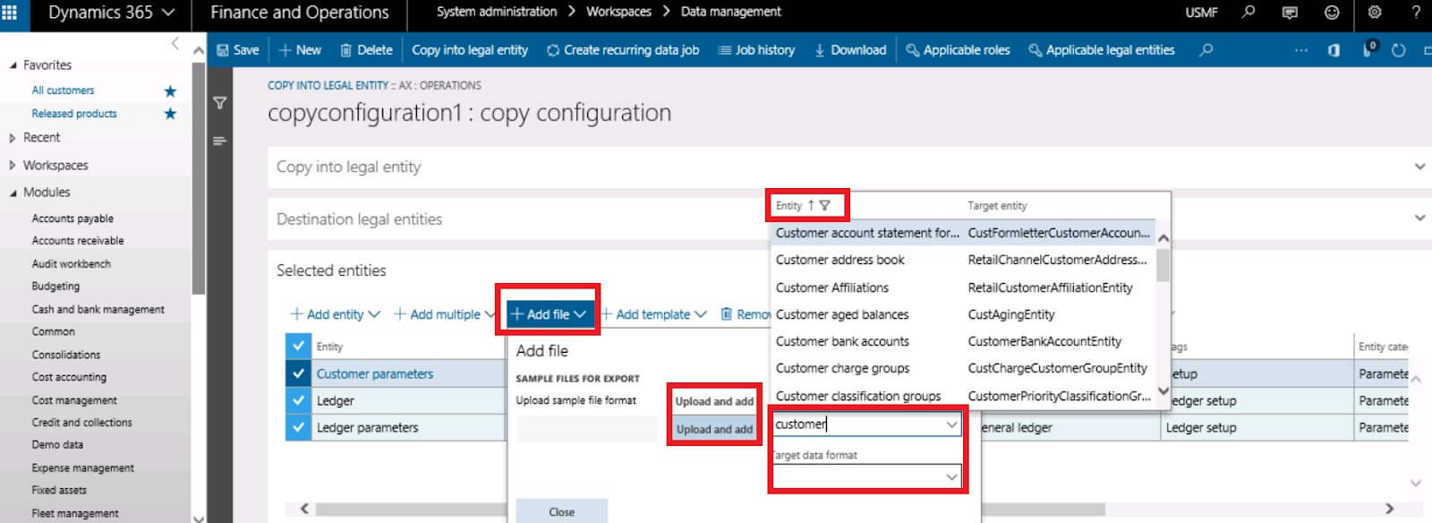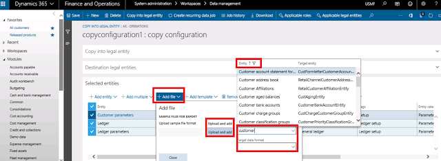 C- add file , in this case, you can upload the file with target data format and select the entity