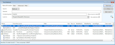 If your requirement is to not look for a string in a method, but instead where the object has been used – ‘Cross Reference’ system in Dynamics AX allows you to see the relationships between objects. For example, you can get a list of every piece of code that uses a particular method, or you can see which forms use a particular table field. You can also get information about where labels are used in the application, but we can’t use the cross reference to look for a string inside a method.
