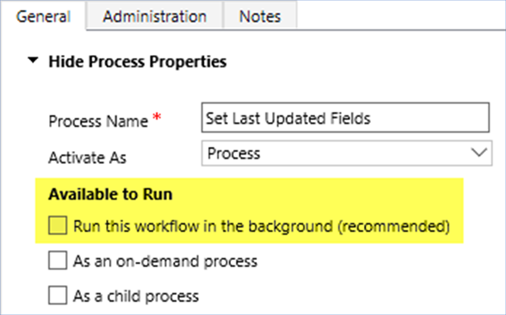 As a result, the Workflow Process is correctly not automatically started and so the Last Updated On and Last Updated By fields are correctly not updated.
