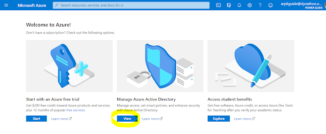 Step 1: Go to https://portal.azure.com/ and sign with your Dynamics 365 trial credentials