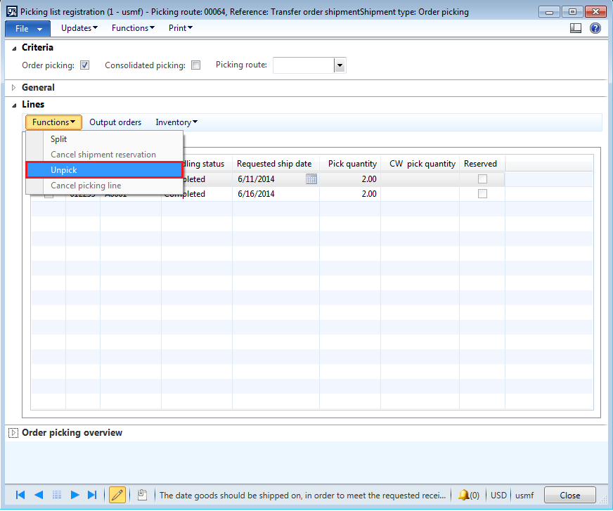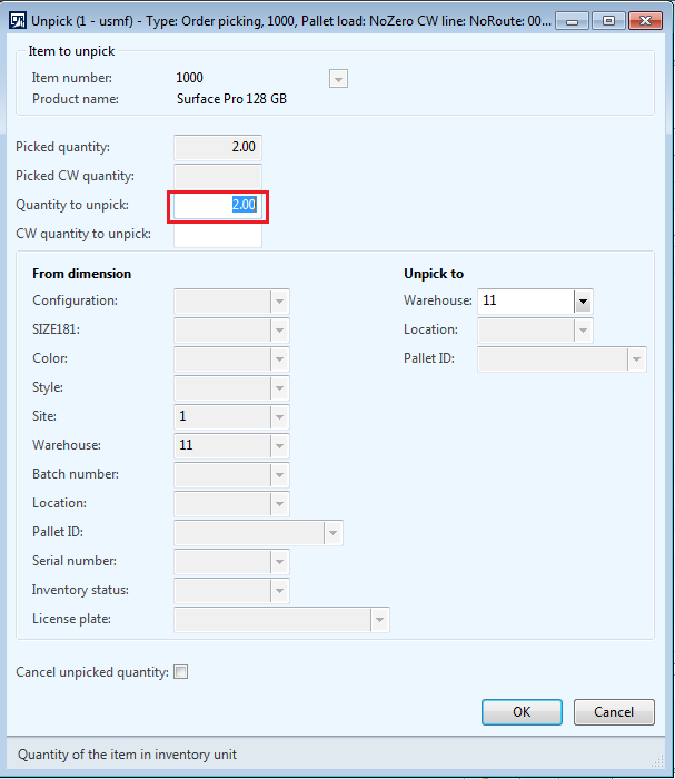 5. Select the quality to unpick. (It can be full quantity or partial quantity)