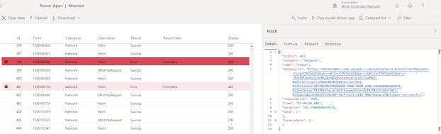 You can also identify those scripts which fail silently due to the missing privileges by checking the error lines in the Network tab of the browser's Developer Tools. Another alternative way is checking the network request details in the recently announced monitor tool for model-driven apps.