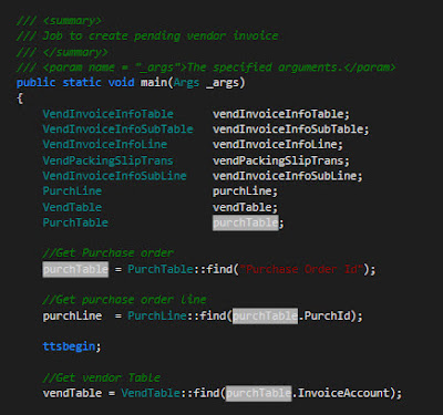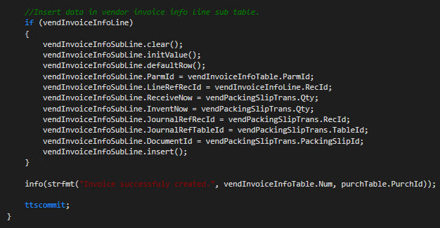 That is all you need to do for creating pending vendor invoice through X++ code.