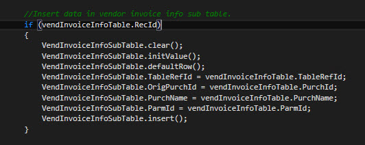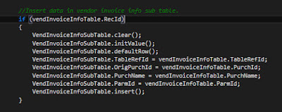- Insert data in VendInvoiceInfoSubTable table.