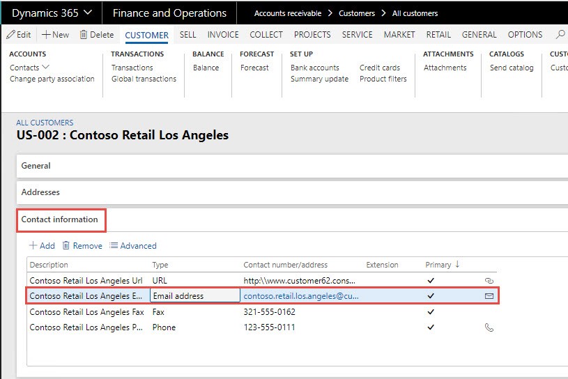 Let’s say a customer has the primary contacts. So, each time when an invoice is emailed to the primary contact (@@ Email token in Email To field) using Print management, the emails with the attached invoice document will be sent to the corresponding customer contacts as shown in the images below.