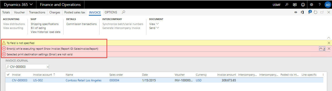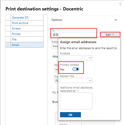 This built-in behavior can be changed if you are using Docentric AX Free Edition so in case the customer contact email address is missing we automatically redirect printing of invoices from Email to Printer. Please follow step by step process to configure an alternative print destination.