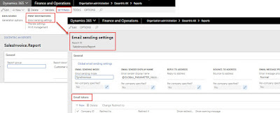 In Docentric report setup click the Settings > Email sending settings button, which opens the Email sending settings form, where you can see the Email tokens tab. This fast tab offers the possibility to specify how to deal with unresolved Email tokens in Email To, Cc and Bcc fields if the Docentric Email print destination is used for printing a report.