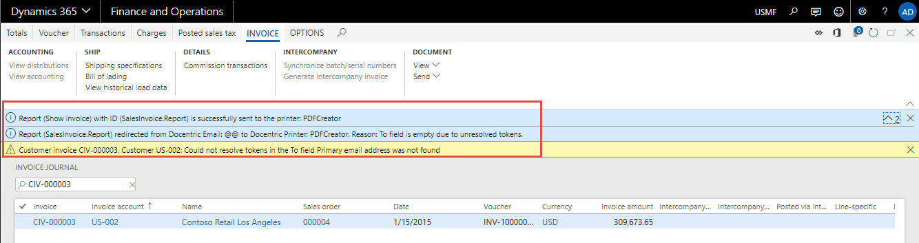That is all you need to setup the email which automatically redirects printing of invoices from Email to printer if customer contact email address is missing. After running the customer invoice report in the below image you can see the result which is redirecting the email to printer in case of email tokens failure.