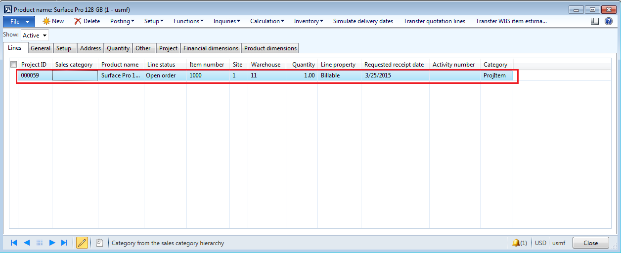 Note: In this case, we cannot perform the posting through sales order and it can only happens through project management and accounting module.