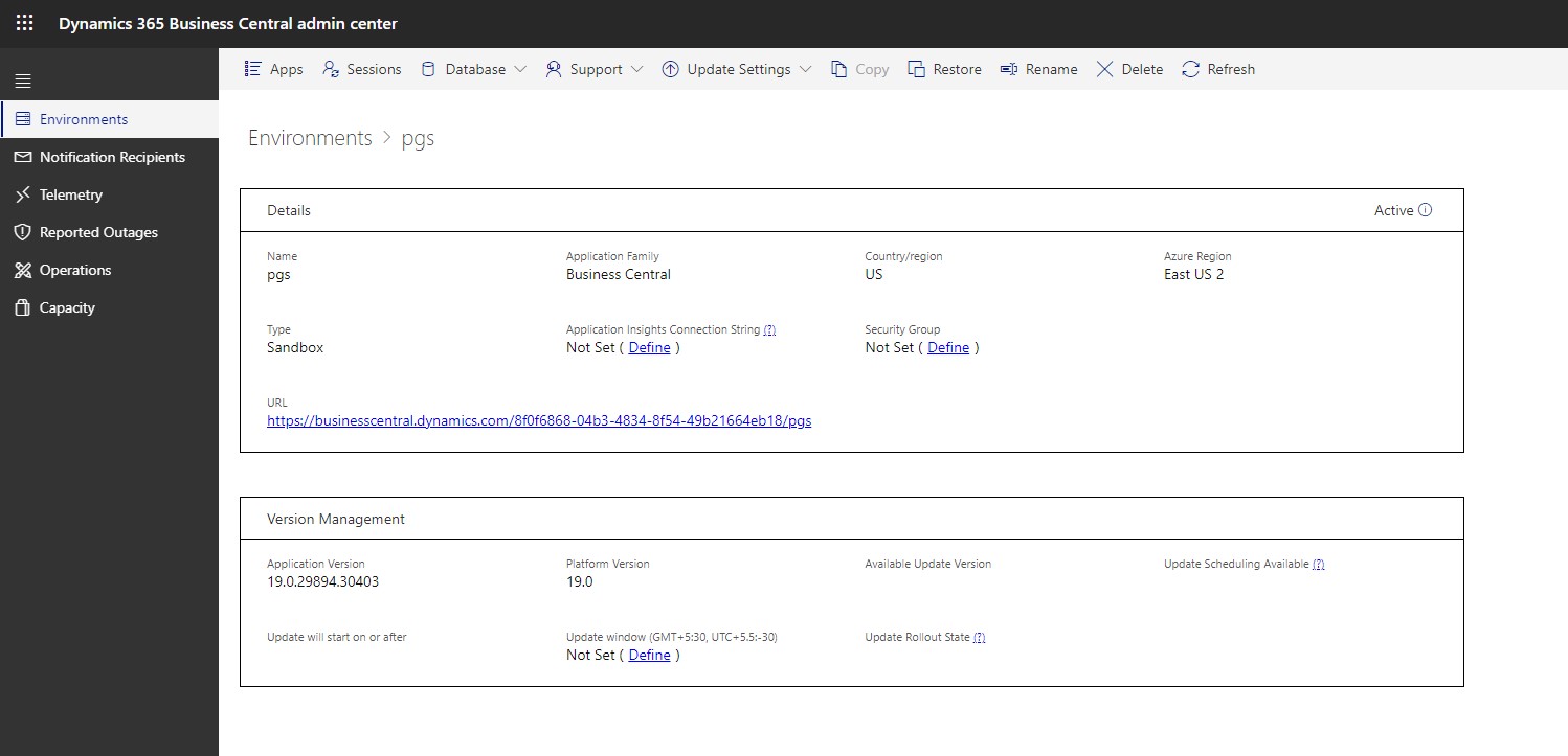 Environment Details page will open