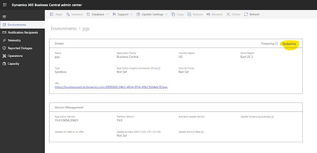 If we go to details screen of environment then we can notice the status “Restarting”