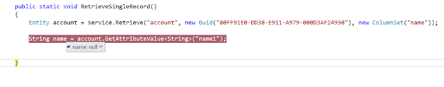 Code to Retrieve only single Record in CRM (C#):
