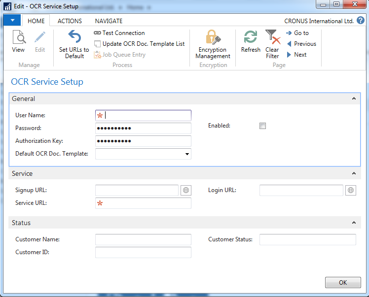 1. Sign-in to Lexmark to fill out the OCR Service set-up in Dynamics NAV 2016.