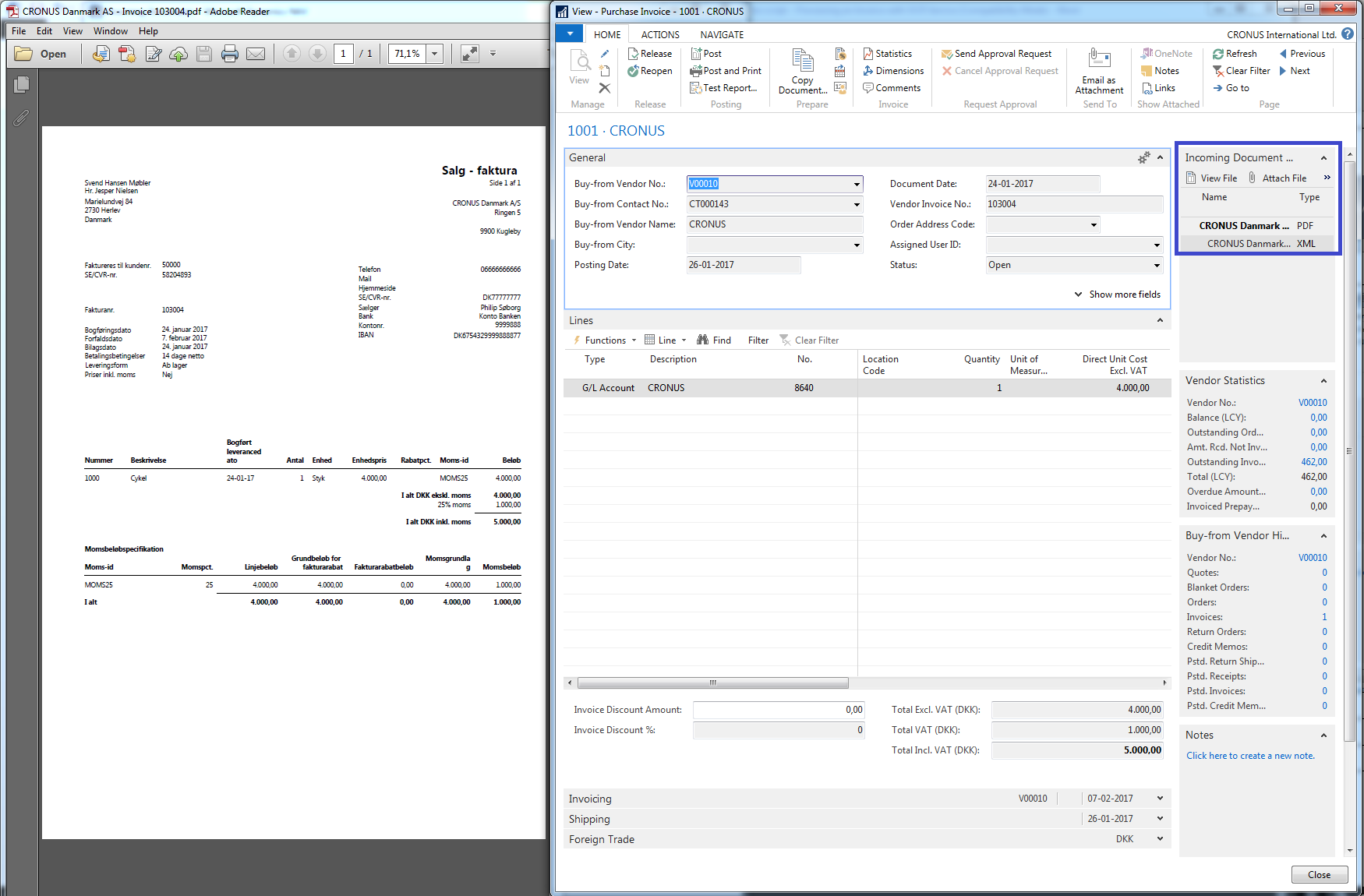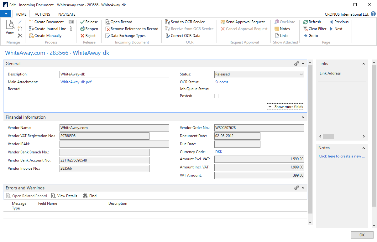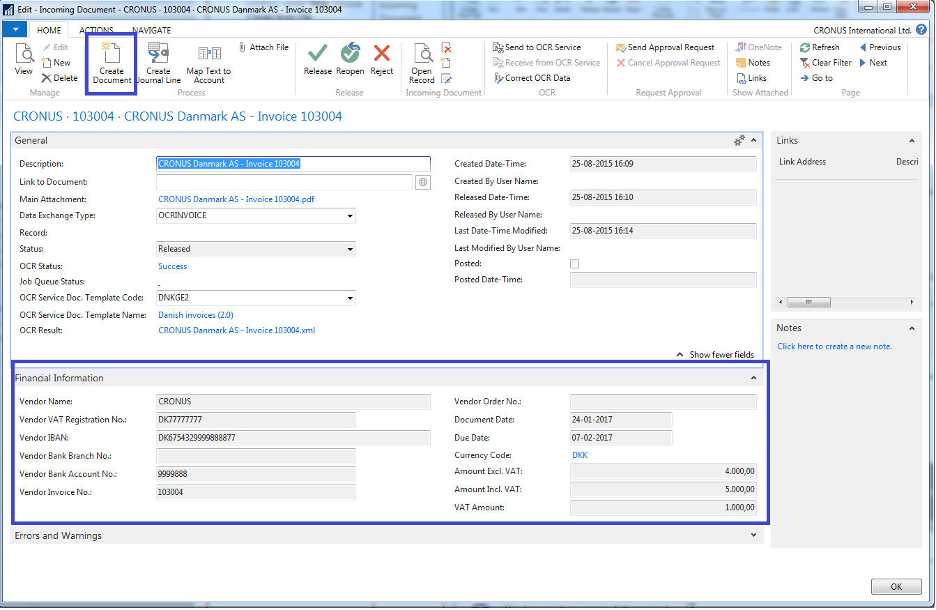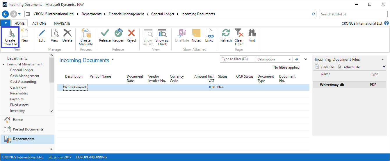 5. Finally, gain direct access to the newly created document via the Incoming Documents Factbox.