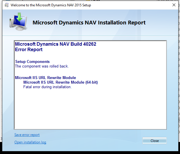 Fatal Error During Installation - Microsoft Dynamics NAV
