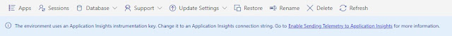 The environment uses an Application Insights instrumentation key. Change it to an Application Insights connection string. Go to Enable Sending Telemetry to Application Insights for more information.