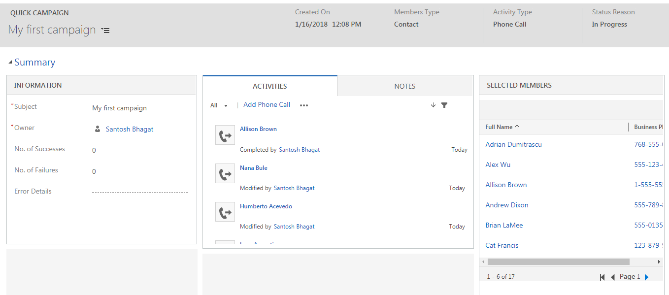 We are creating this phone call activity in Campaign Response.