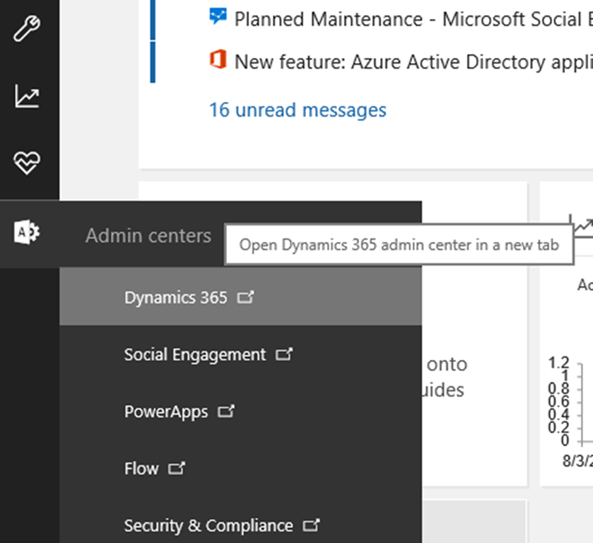 On the left-hand navigation pane, find the Admin Centers button and select Dynamics 365