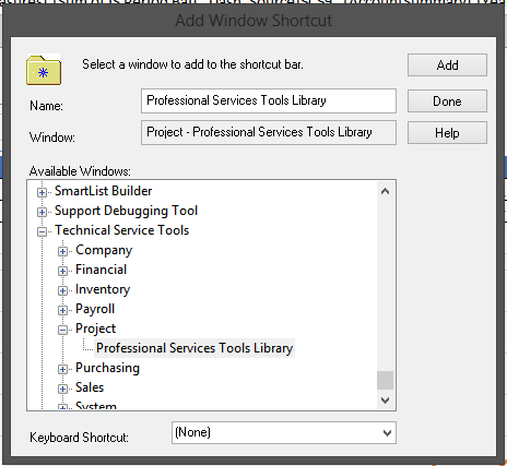 Dynamics GP 2013 is out and the Professional Service Tools Library (PSTL) are now included with the product. You no longer have to download and install them. However, you do have to add the menu to the Shortcut Bar. To add the PSTL menu: