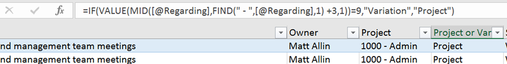 Luckily, I was able to get around this limitation with the Excel Templates as the Name of the Regarding Record contained the value I needed to group the appointments by. But instead of a simple ‘If’ statement I now needed to find the value in the middle of the name and set a value.