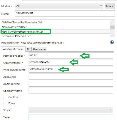 5. For the Purpose of this Article, we need to use only New-NavServerUser and New-NAVServerUserPermissionSet.