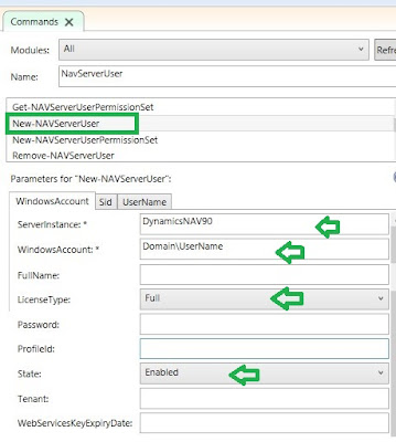 3. Refresh the commands Panel and search for NAVServerUser, The result will be something like Shown Below..