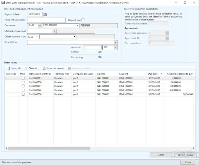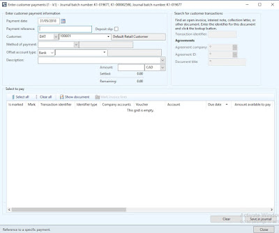 2- Go to Payment journals (Accounts receivable/Common/Payments/Payment journals)