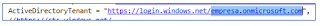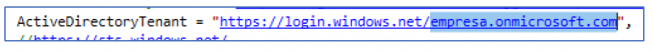 La información correcta que debe enviar en la aplicación para el directorio activo del inquilino debe ser: empresa.onmicrosoft.com.