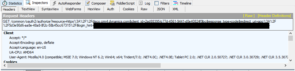 I fired up the PluginRegistrationTool from the SDK, hooked fiddler on to it and hit the "create new connection" button in the tool.
